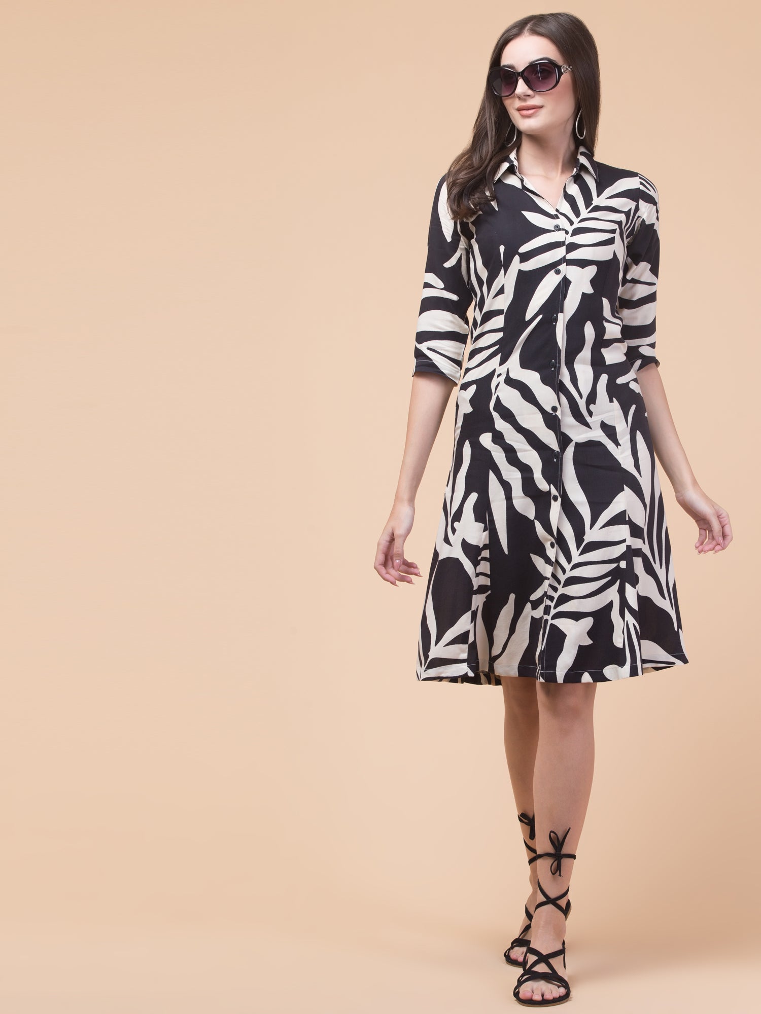 Elegant Gold Printed Black Fit and Flare Maxi Dress