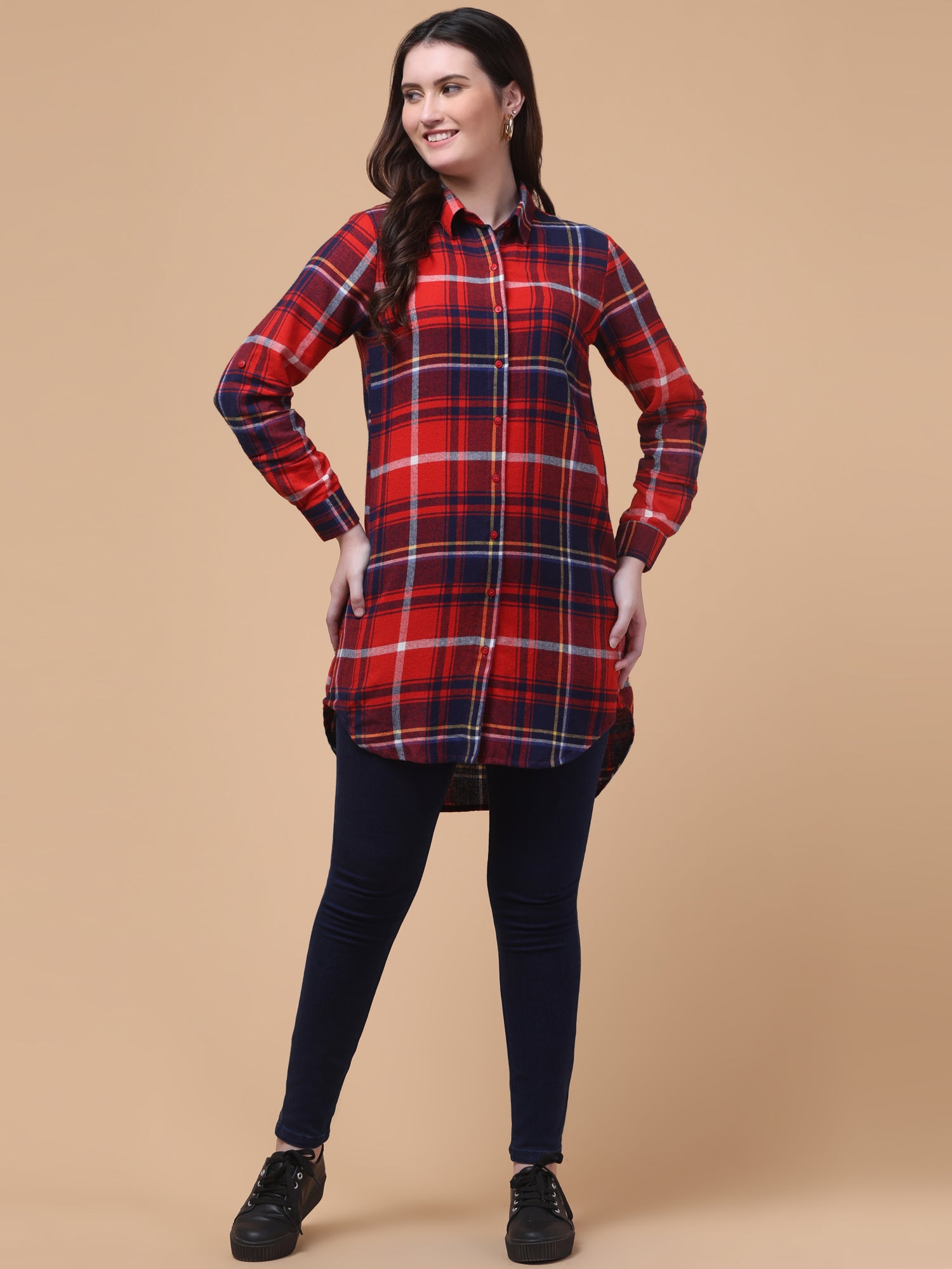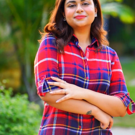 Add effortless charm to your wardrobe with this Scarlet Checks Shirt Dress. Made from breathable cotton, it features full regular sleeves, a classic shirt style, and an above-knee length—perfect for casual outings or layering in any season.