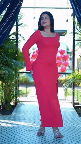 Turn heads with the Crimson Enigma Bodycon Dress, a timeless addition to your Western wear collection. Crafted from a smooth and stretchy Lycra Blend, this dress features a solid pattern that accentuates its body-hugging fit. The long sleeves add a sophisticated touch, while the maxi length enhances its elegance. Perfect for evening galas, parties, or upscale gatherings, this dress is a bold statement piece.